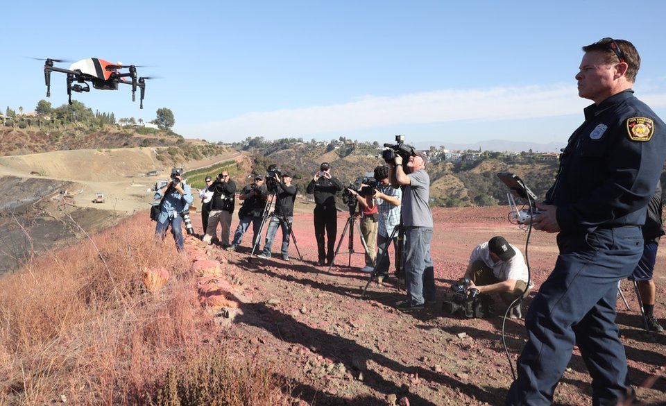 Fire departments are keen to use UAVs to improve situational awareness for small units operating in danger areas. Image: LA County Fire Department